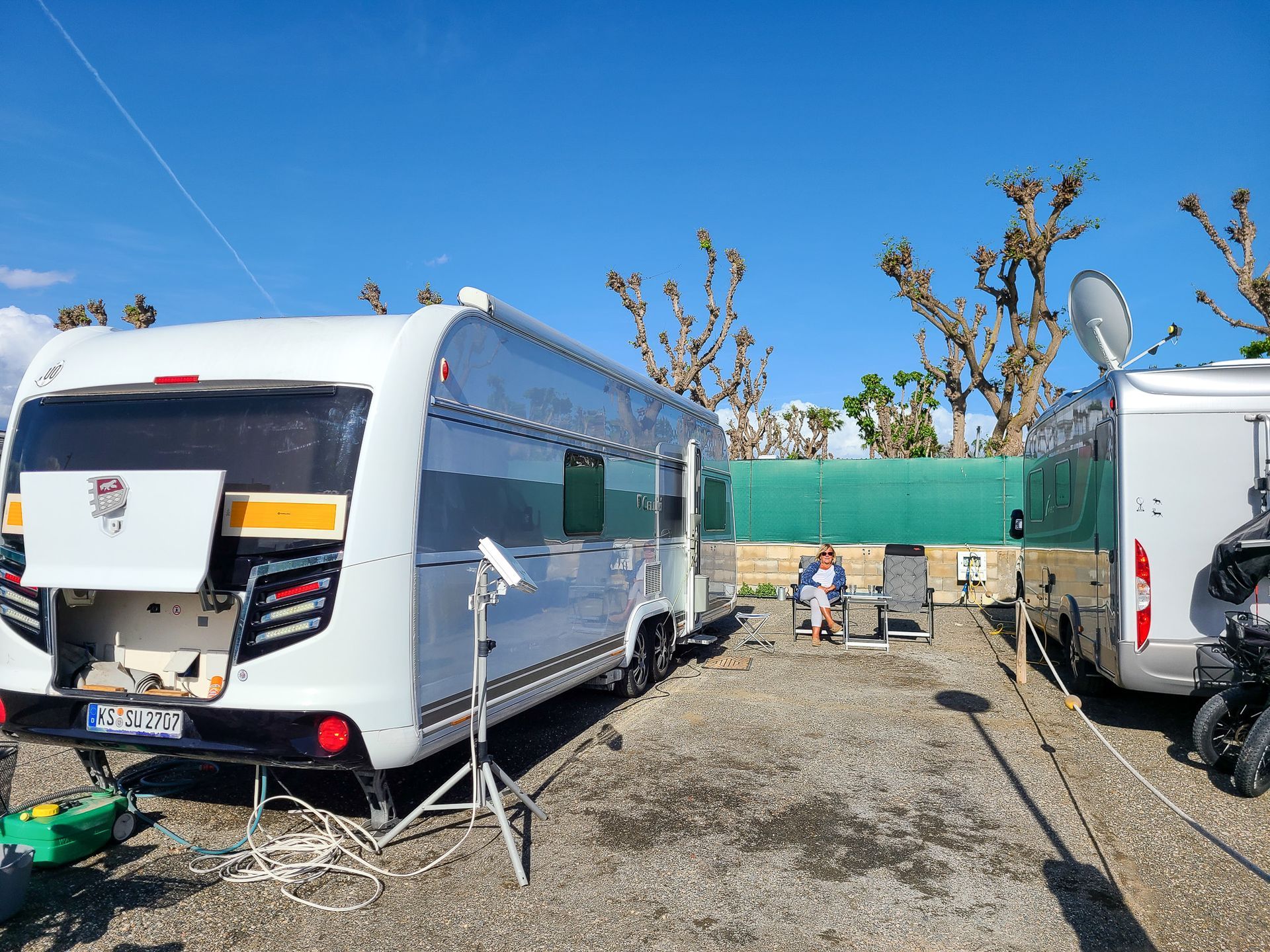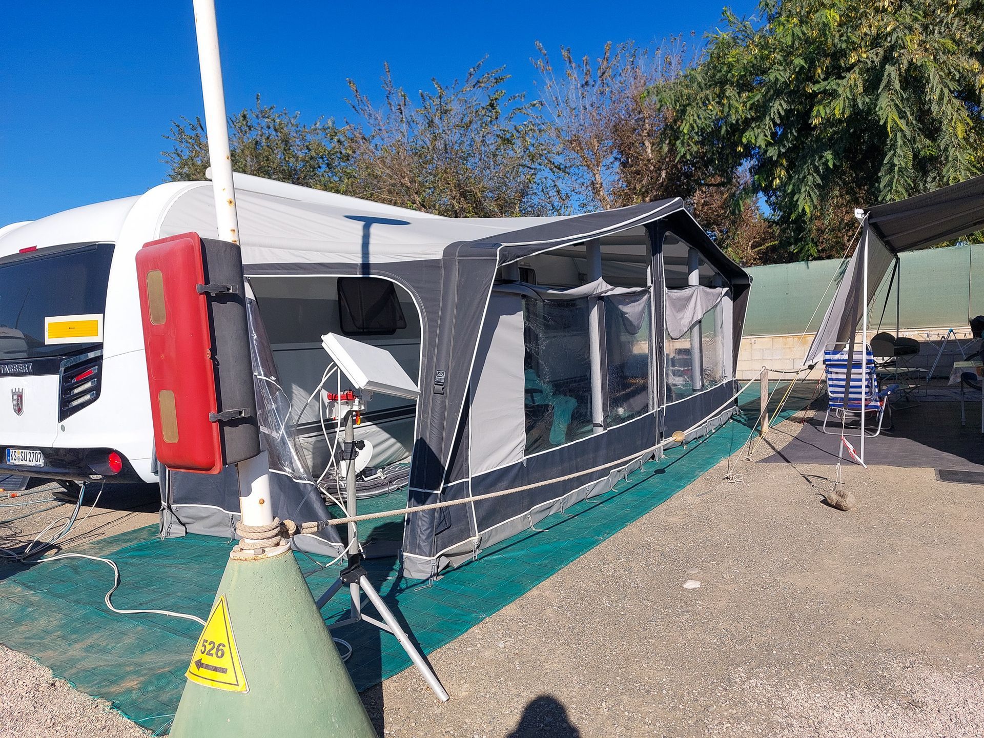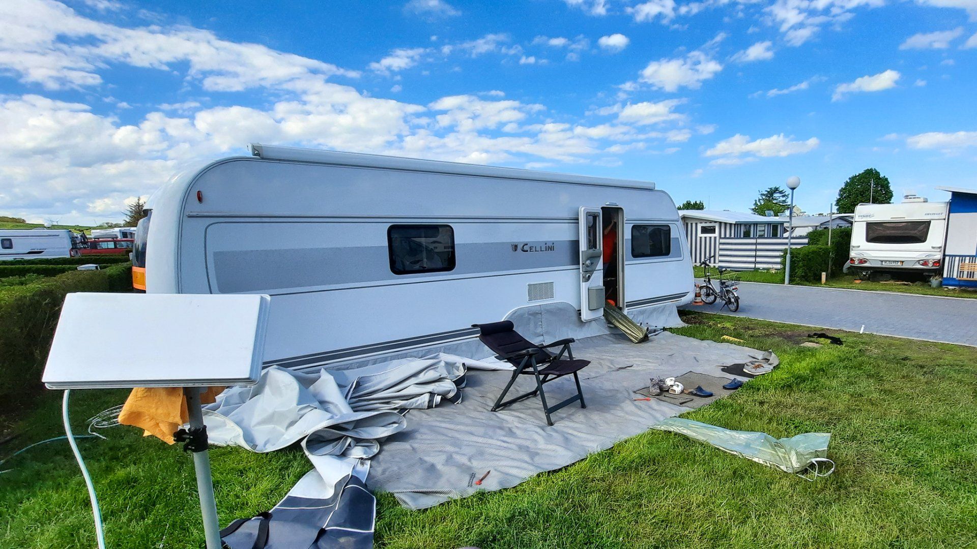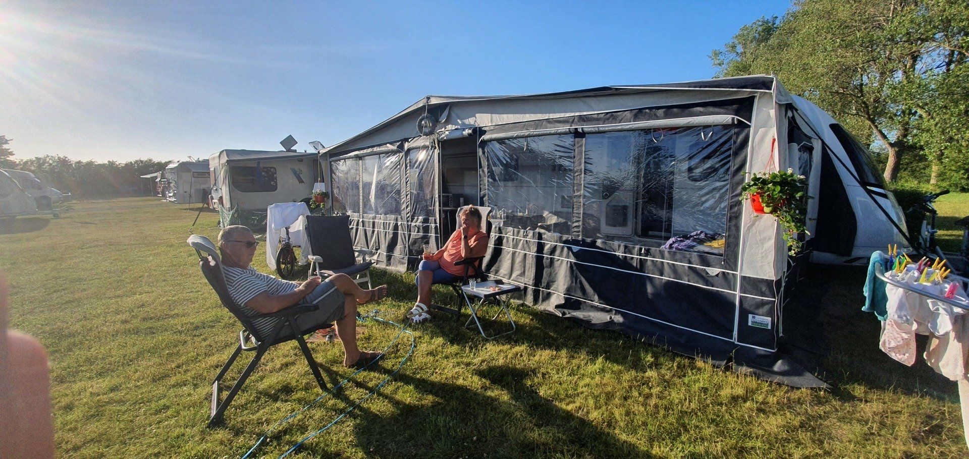 Außerdem habe ich ein paar Bilder unserer "Sonnenterrasse" hinzugefügt. Auf einem FKK-Platz muss man schon aufpassen, wenn man Fotos macht. Unsere Nachbarn waren nicht da.