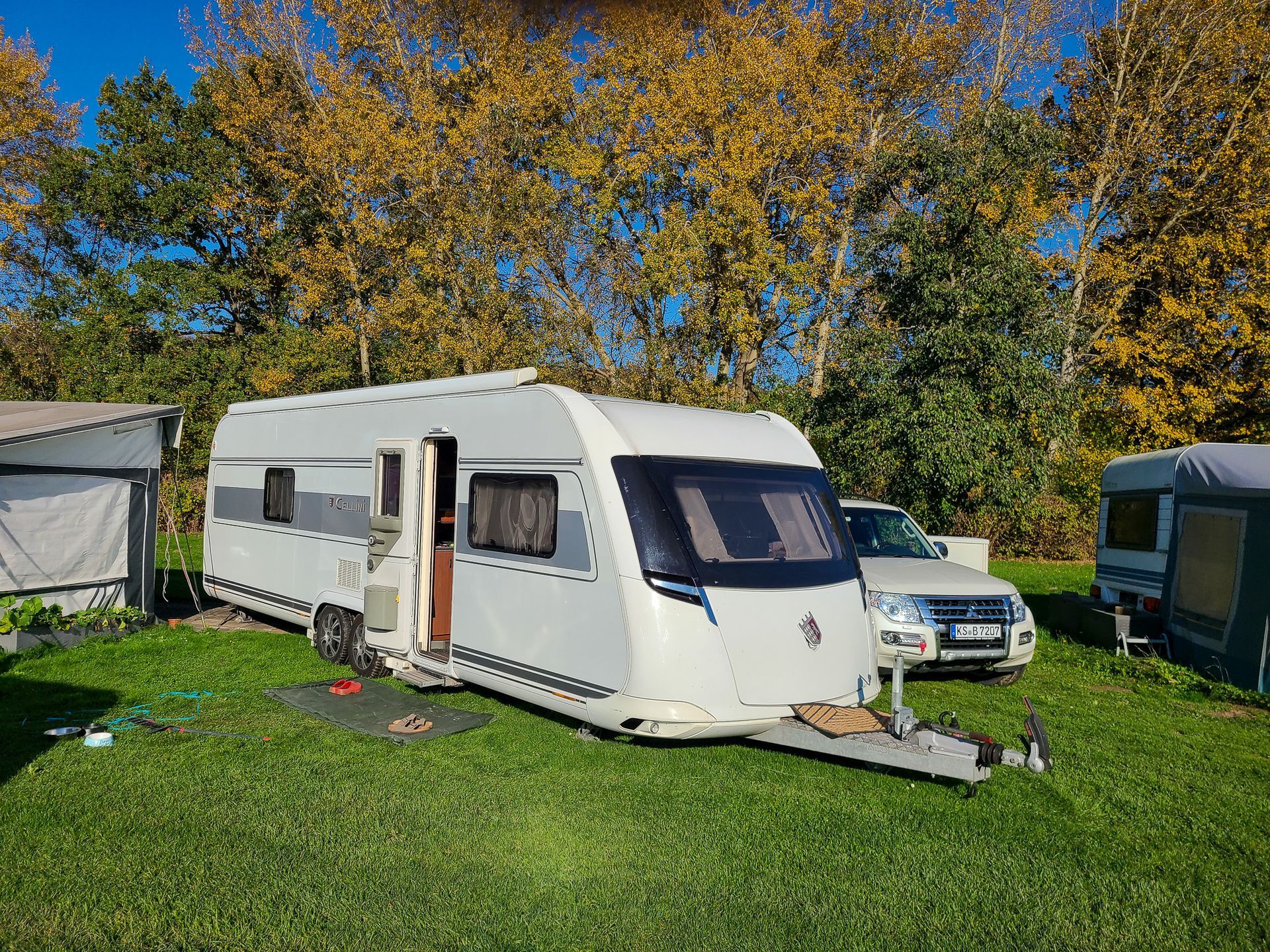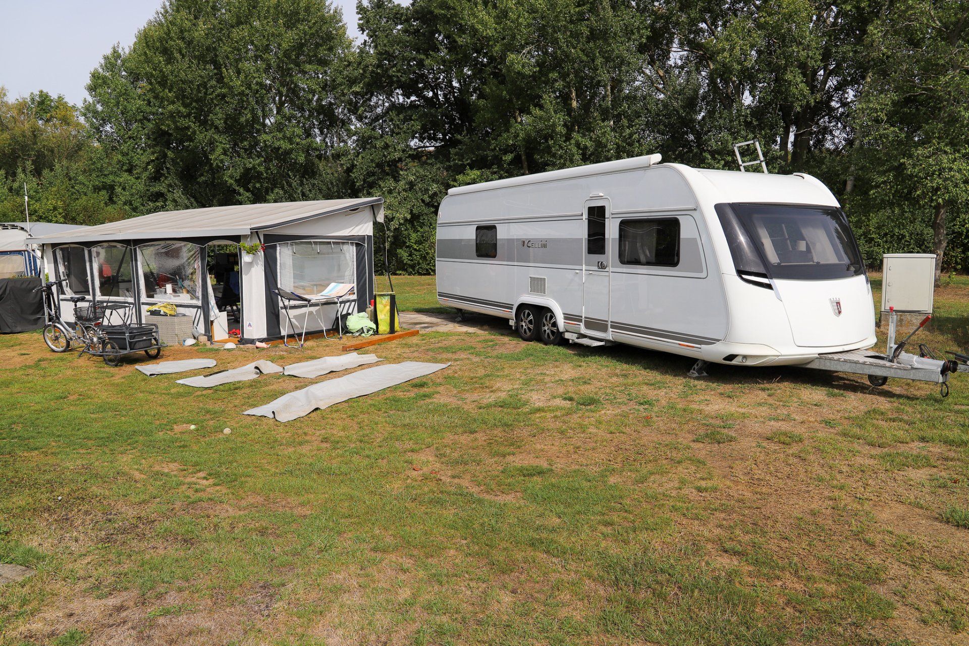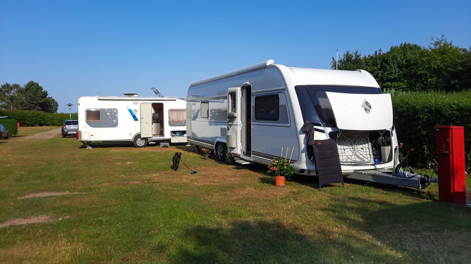 Außerdem habe ich ein paar Bilder unserer "Sonnenterrasse" hinzugefügt. Auf einem FKK-Platz muss man schon aufpassen, wenn man Fotos macht. Unsere Nachbarn waren nicht da.