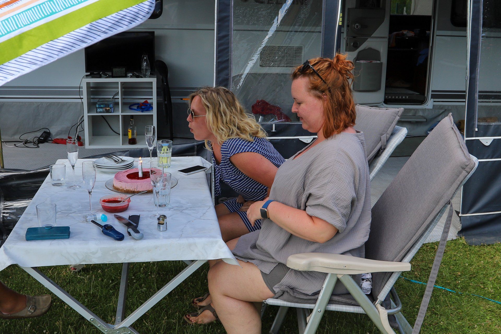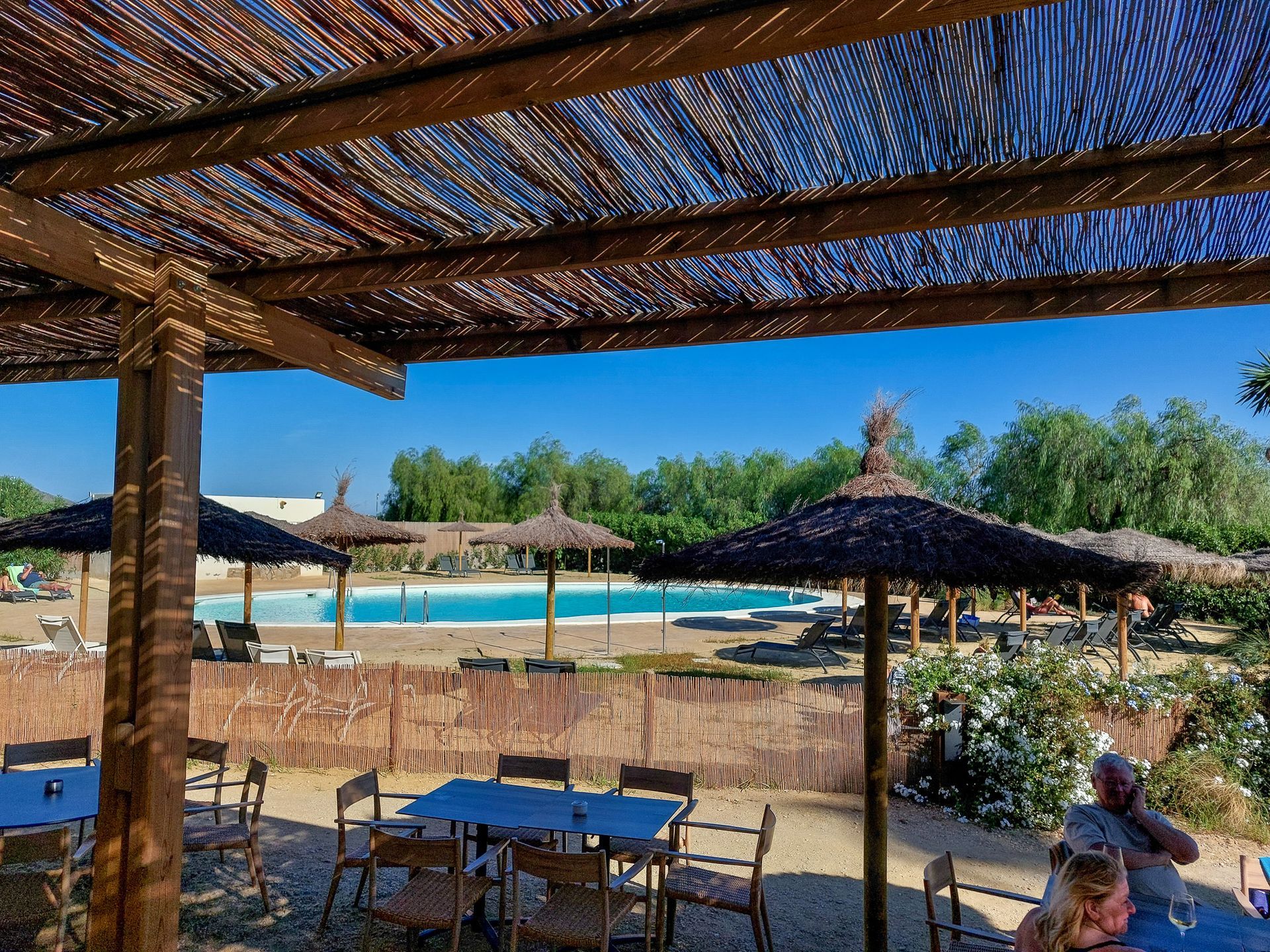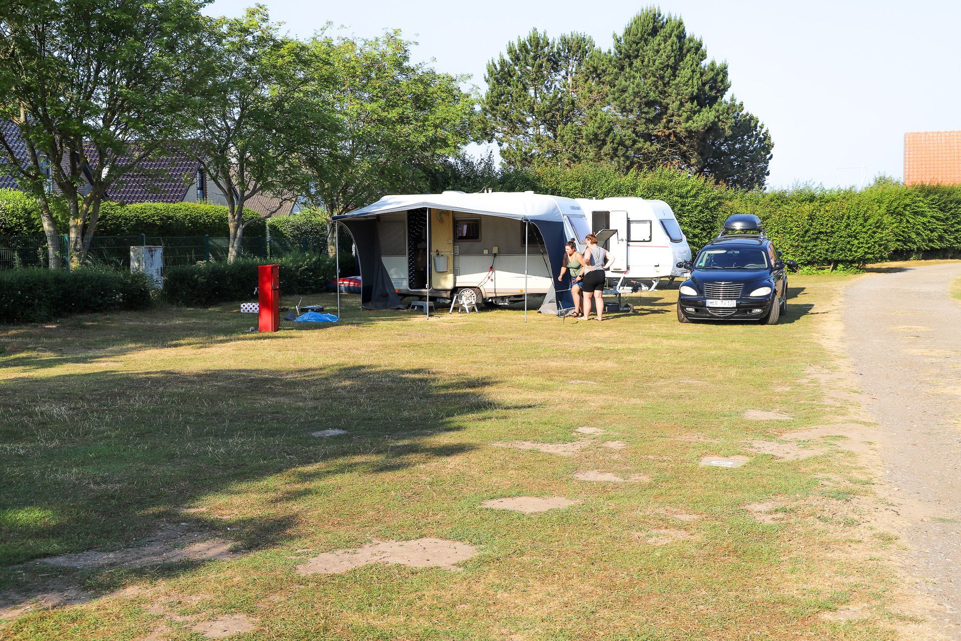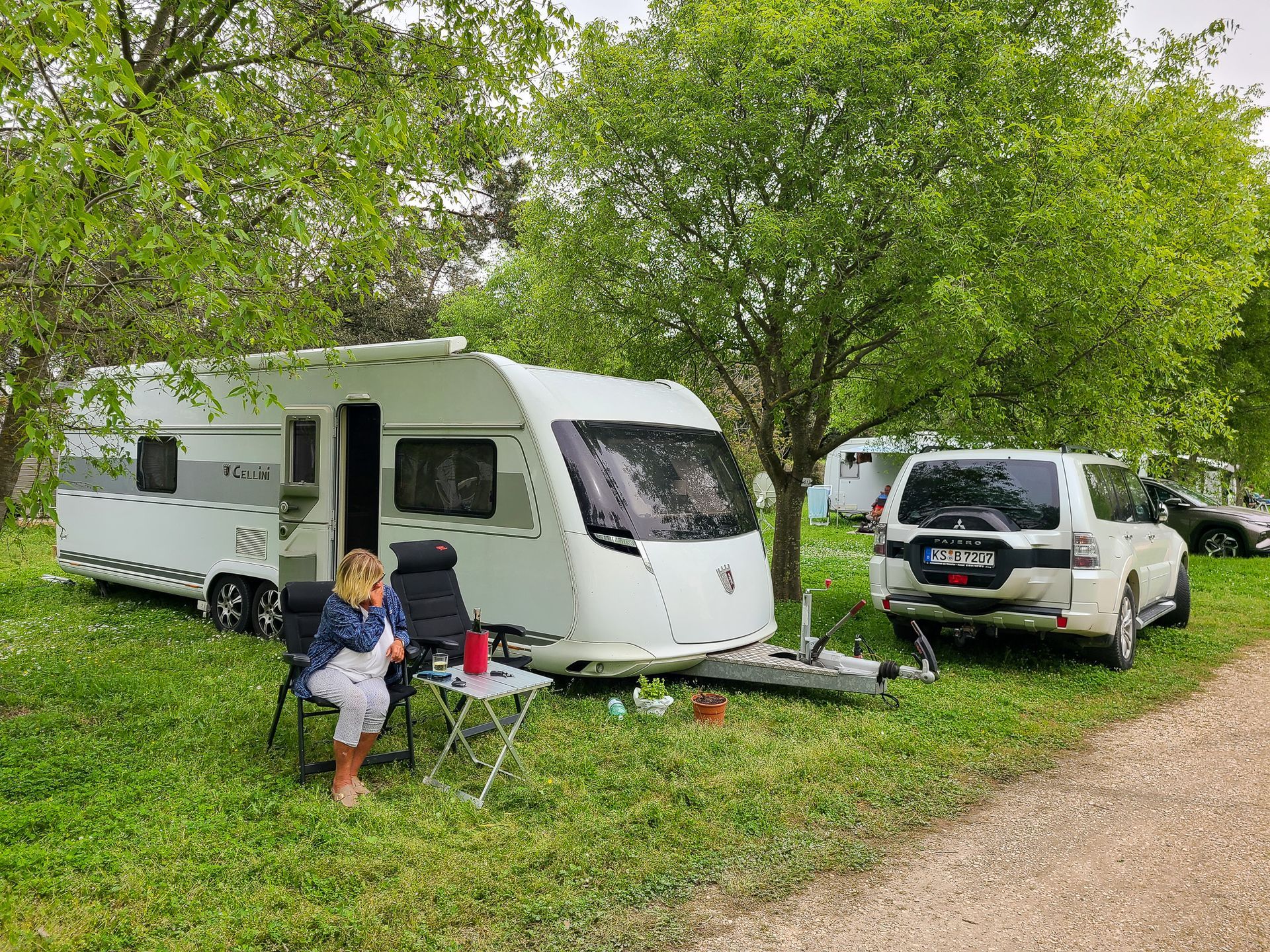 Außerdem habe ich ein paar Bilder unserer "Sonnenterrasse" hinzugefügt. Auf einem FKK-Platz muss man schon aufpassen, wenn man Fotos macht. Unsere Nachbarn waren nicht da.