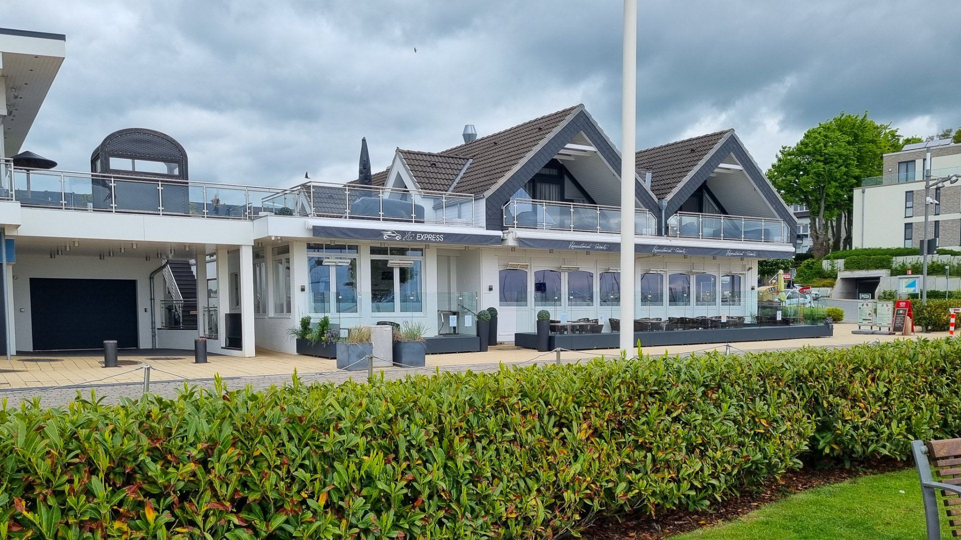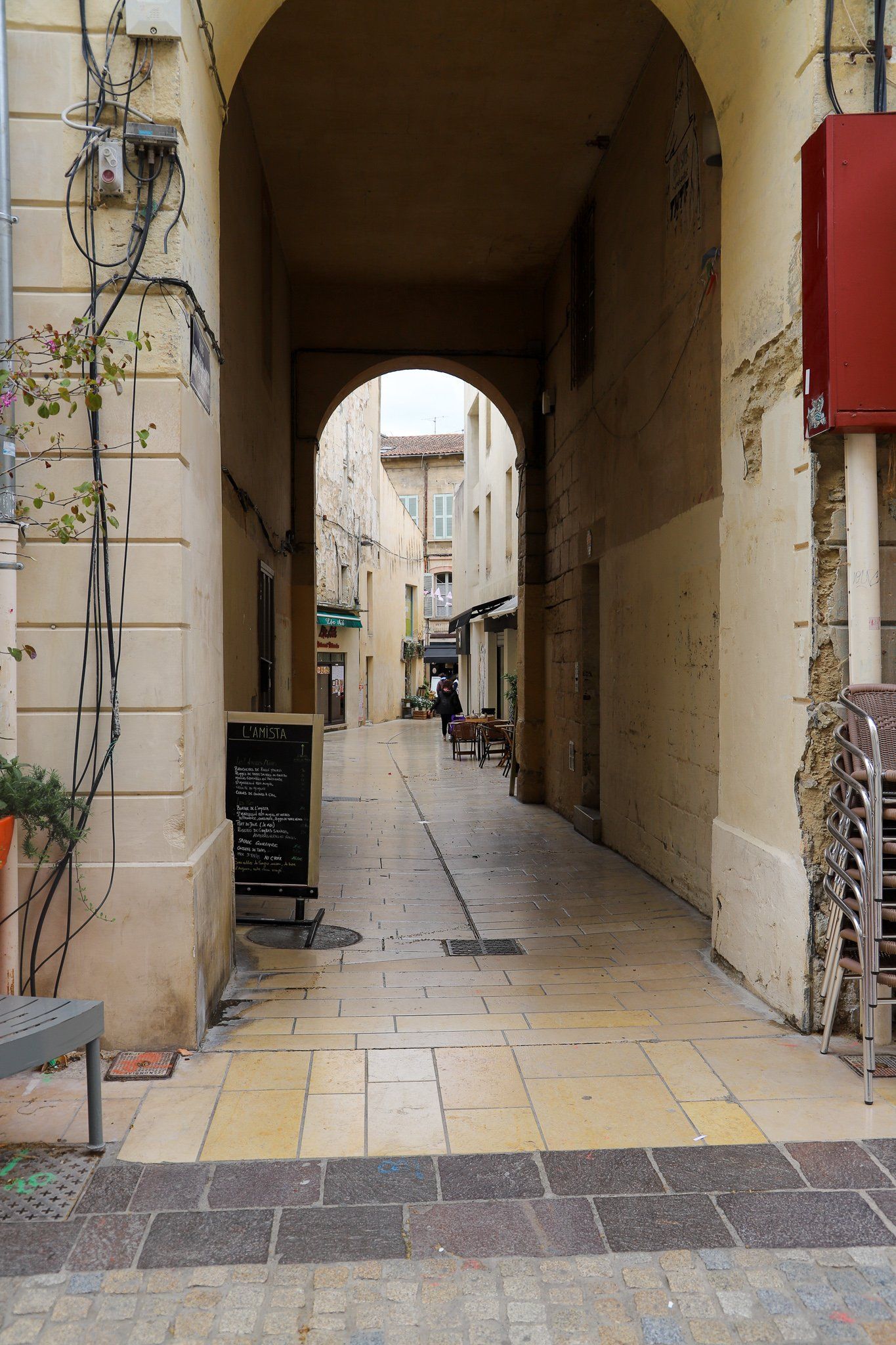 Der erste Besuch in der Stadt fand bei denkbar schlechtem Wetter satt. Ein kalter Nordwind fegte durch die Gassen und führte zu einem Eigenleben der auf den Bürgersteigen stehenden Tischen und Stühlen, aber auch die Aufsteller setzten sich in Bewegung.