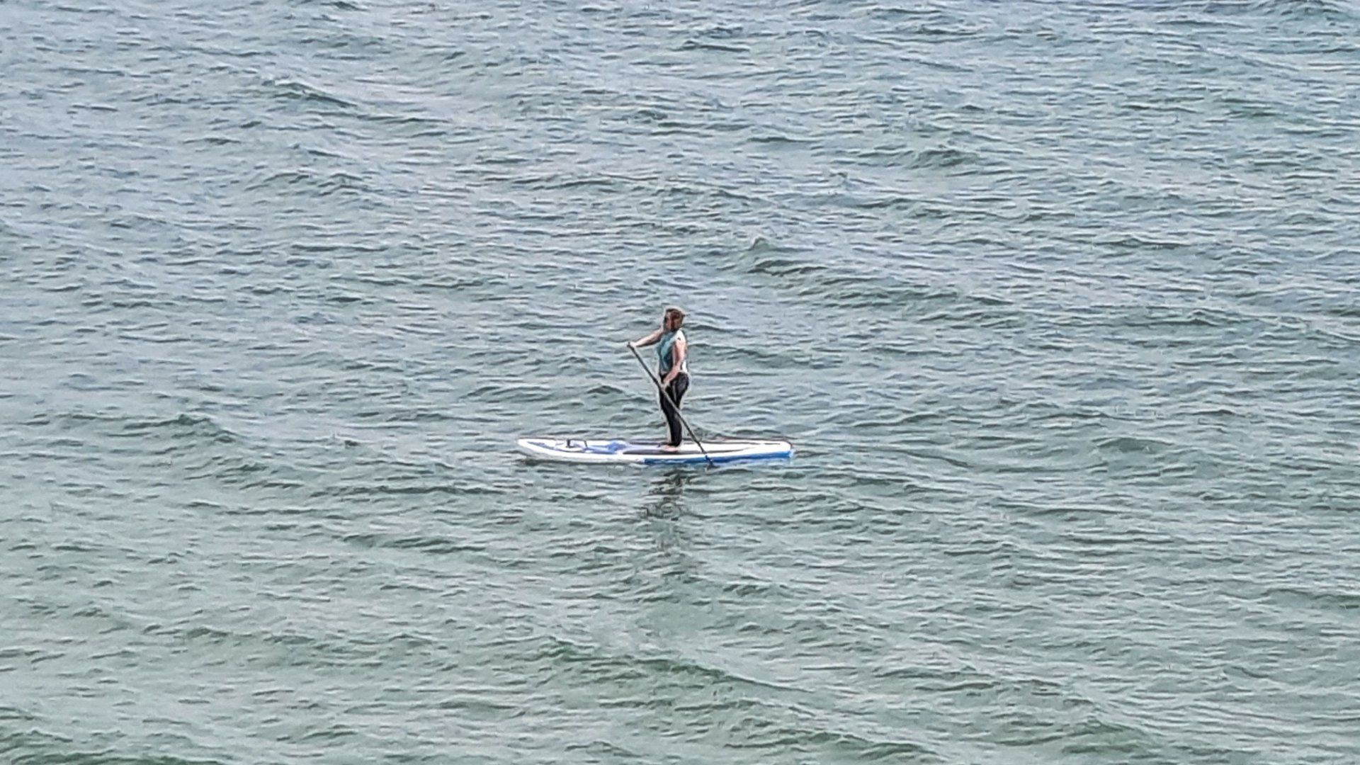 Das Wasser hat wohl knapp unter 20° C und genügt den Mädels schon mal zum Baden oder Fahren mit dem SUB. Da bin ich anders. Mit Wasser kann man sich waschen, man kann es trinken oder damit kochen. Darin Schwimmen muss man nur im äußersten Notfall.