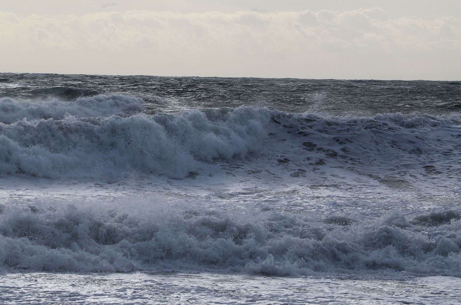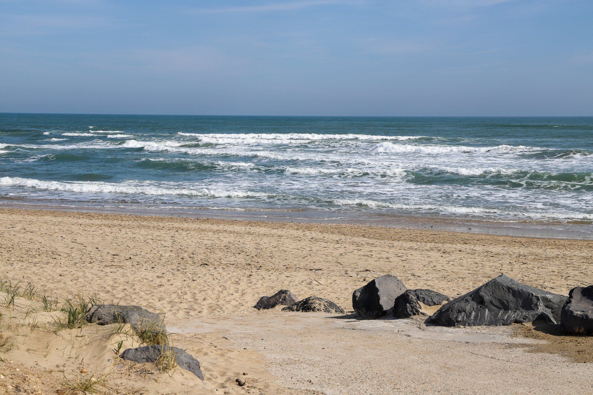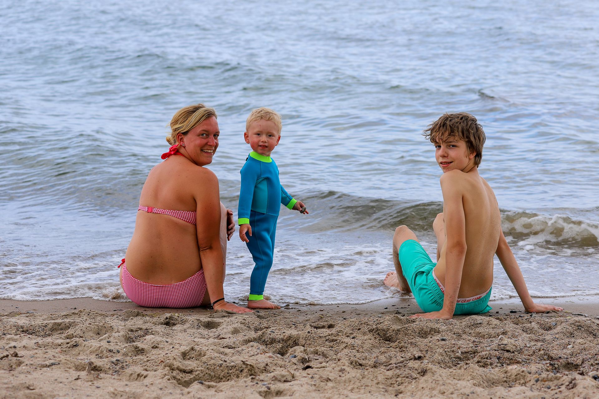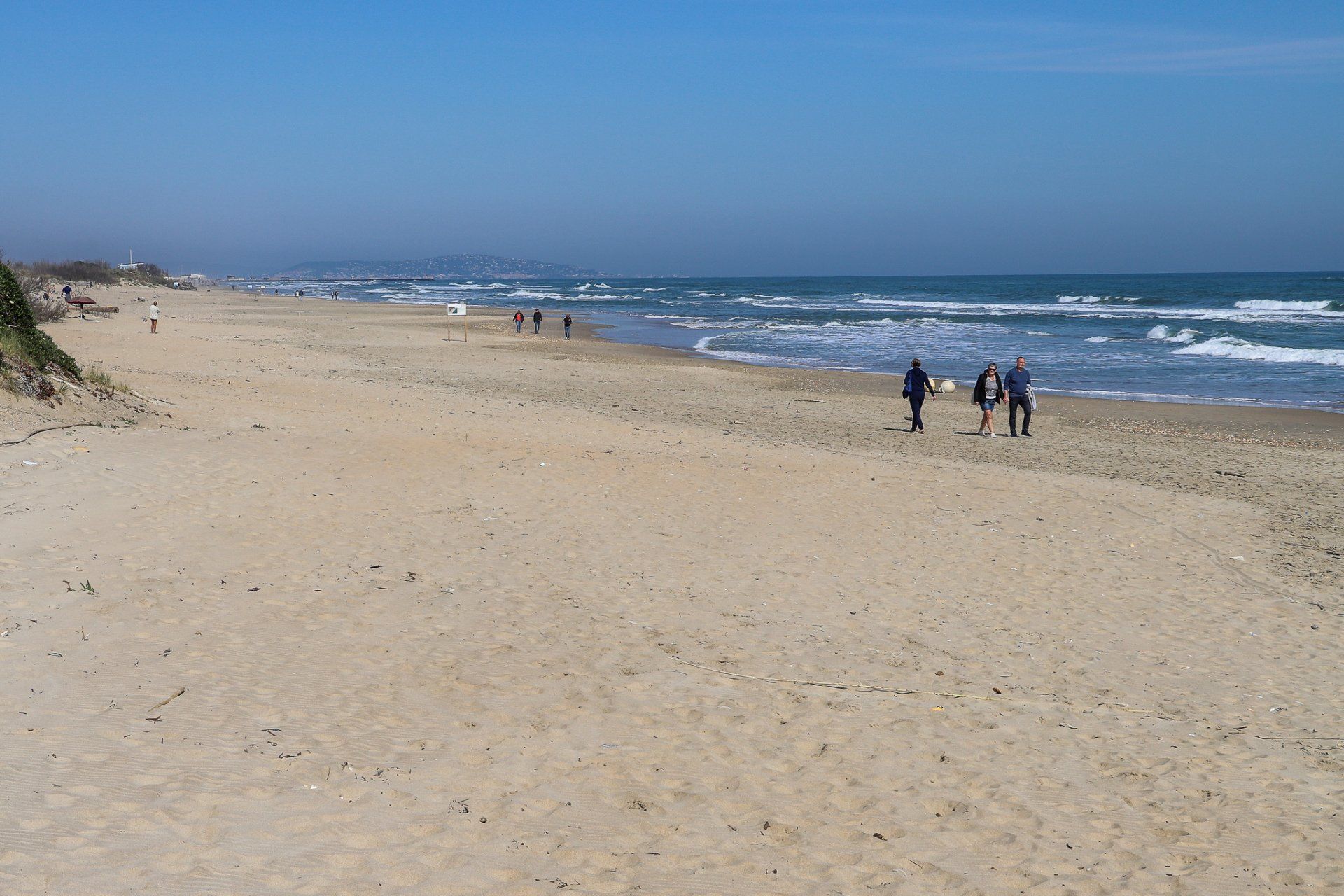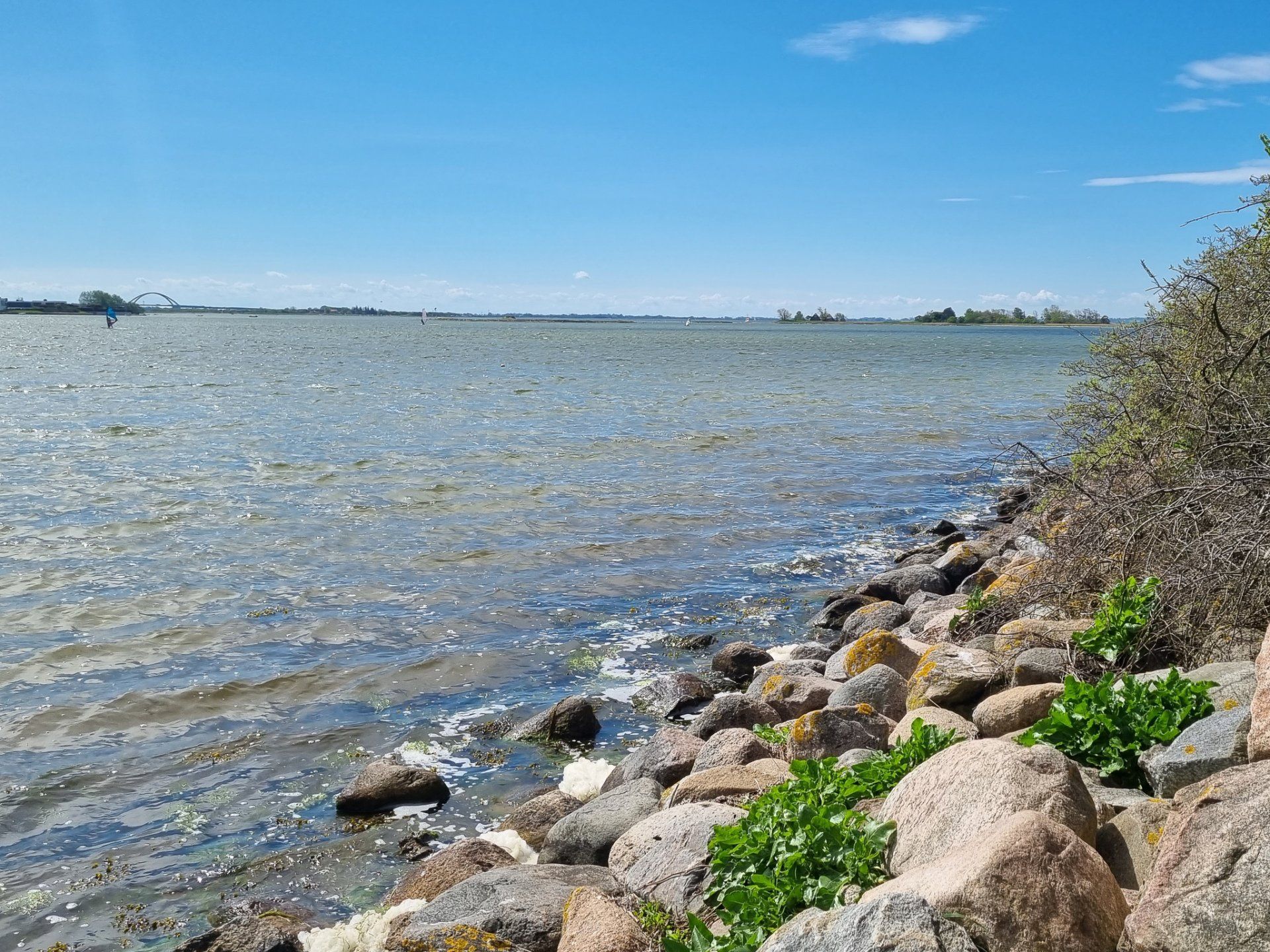 Bei kräftigem, auflandigen Wind und das schon über ein paar Tage, kommt es auch hier zu einer ganz ordentlichen Wellenbildung. Auch wenn das nach dickem Pullover und Windjacke aussieht, sollte man sich nicht täuschen lassen. Die Lufttemperatur beträgt ca. 18° C und das Wasser hat zwischen 14 und 16° C. Für mich auf jeden Fall zu kalt zum Baden, aber kurze Hose und T-Shirt sind definitiv ok.
