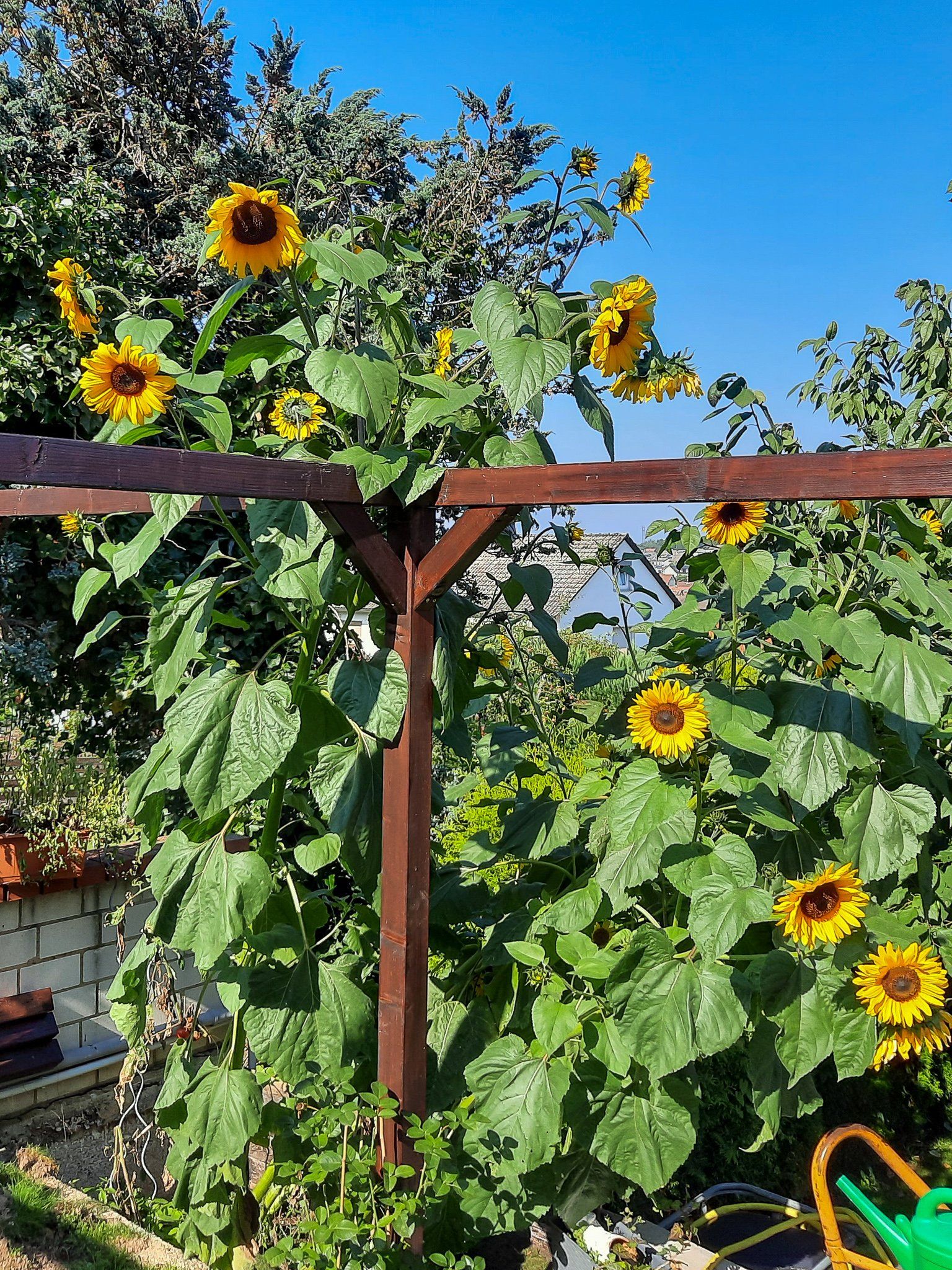 Unser "Gemüsegarten" entwickelt sich ganz prächtig. Wir haben die erste Gurke geerntet. Dies obwohl uns beim Einpflanzen ein Malheur passiert ist. Der Stamm knickte ab und brach teilweise. Den "Bruch" haben wir medizinisch korrekt geschient und stabilisiert und siehe da jetzt trägt sie ordentlich Gurken und die sind nicht zu klein. Das Aroma ist super. Mal sehen, was bei den Tomaten und Paprika noch so passiert. Lediglich unsere Stockrosen sind noch gar nicht so wie wir es uns vorgestellt haben. Von langen Stielen und Blüten keine Spur. Vielleicht sind wir auch noch zu ungeduldig
