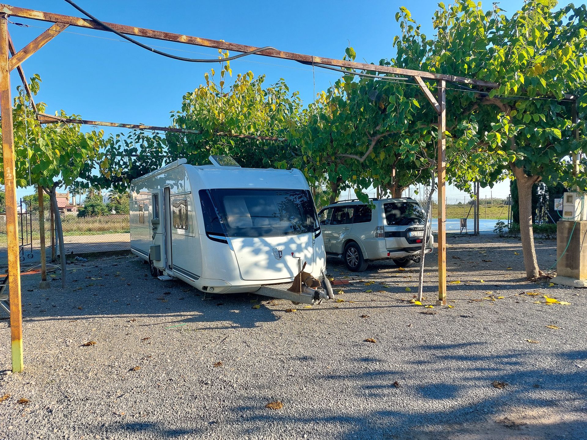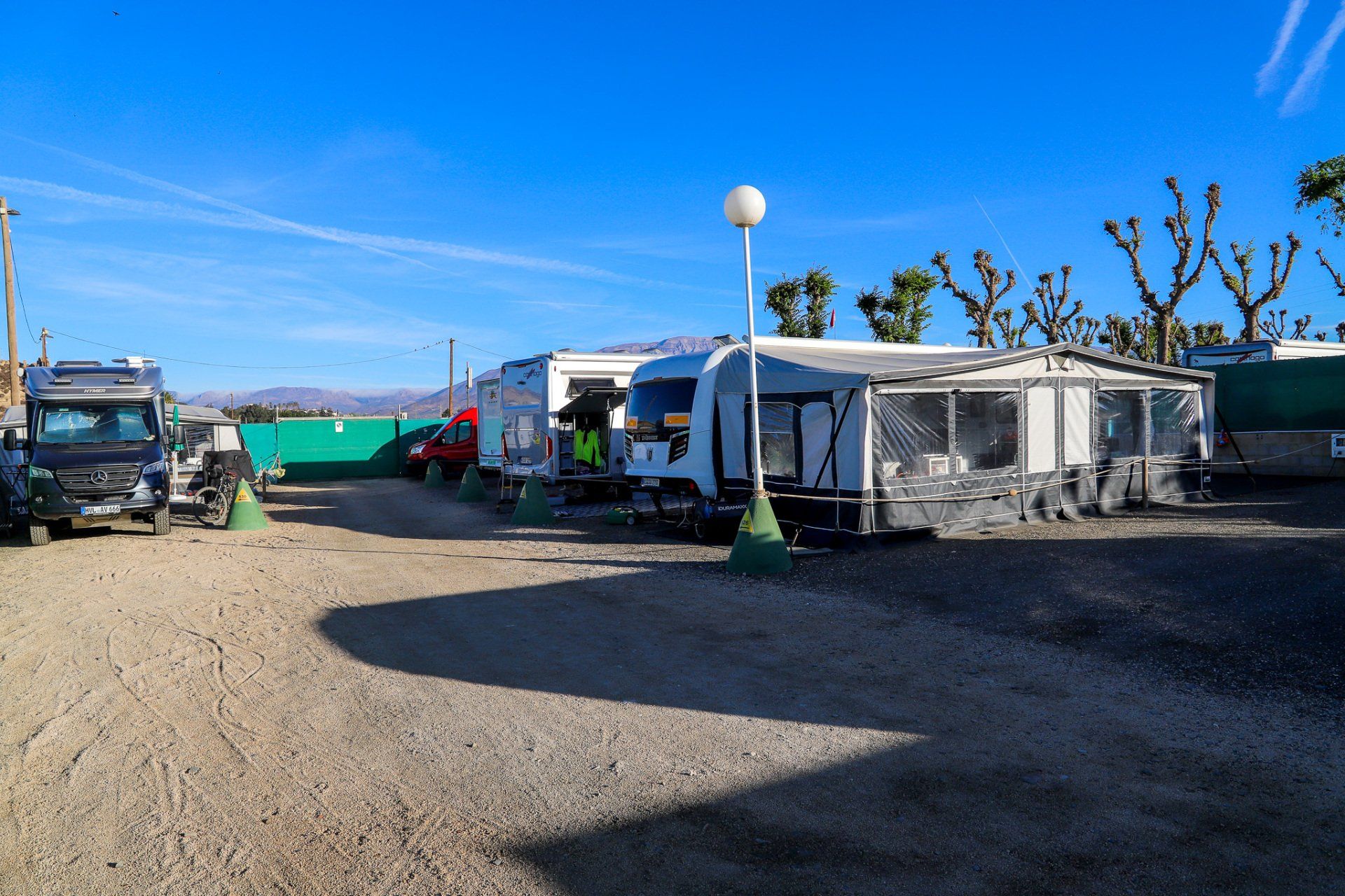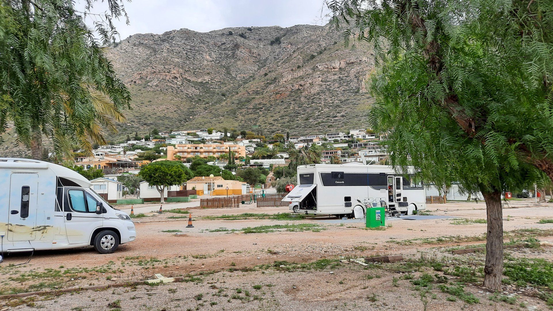 Am 2. April brachen wir auf und fuhren nach Mazarrón. Die Fahrt begann schon mit einem Knarzen. Uwe hat das Tor vom Campingplatz ein wenig mitgenommen. Die Fahrt war sonst ohne Probleme. Angekommen am Campingplatz konnte Uwe die Handyhülle samt seiner EC-Karte, Perso und Führerschein nicht wiederfinden. Nach der Anmeldung verlor er auch noch die Camping Key Card, alles im allem ein gebrauchter Tag.