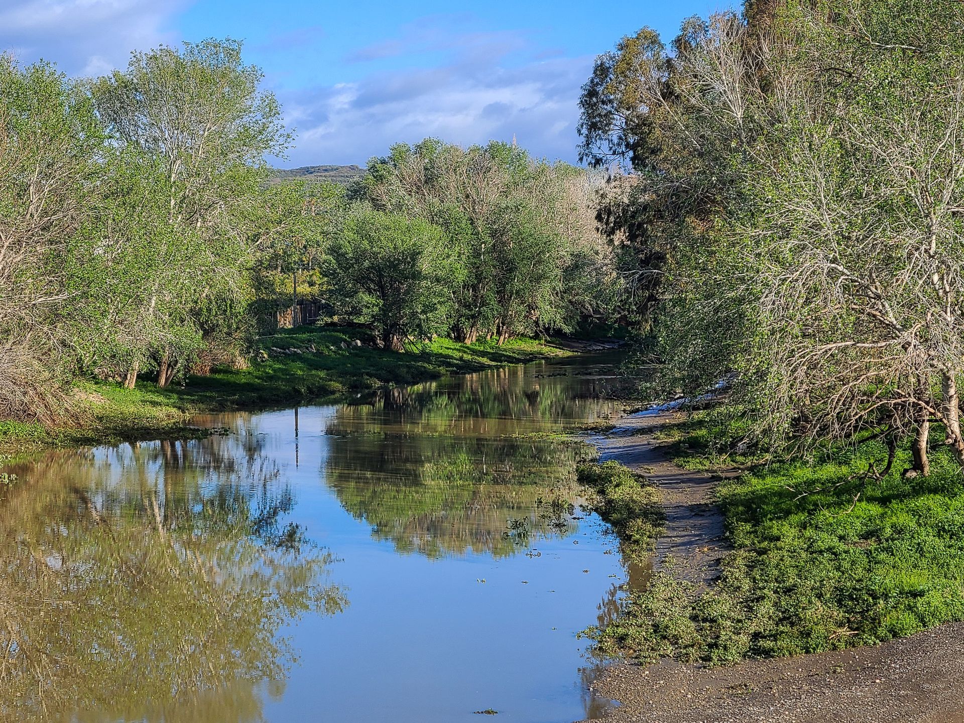 Schaut man aber etwas genauer hin, sieht man, dass es auch hier ganz ordentlich geregnet hatte. Diverse Pfützen und Wasserlachen sind auch nach einigen Tagen, trotz bestem Wetter, Sonnenschein und Temperaturen über 22°C, noch nicht abgetrocknet. Auch an den diversen sonst weitgehend trockenen Flüssen, sieht man noch die Spuren eines kräftigen Wasserlaufes.