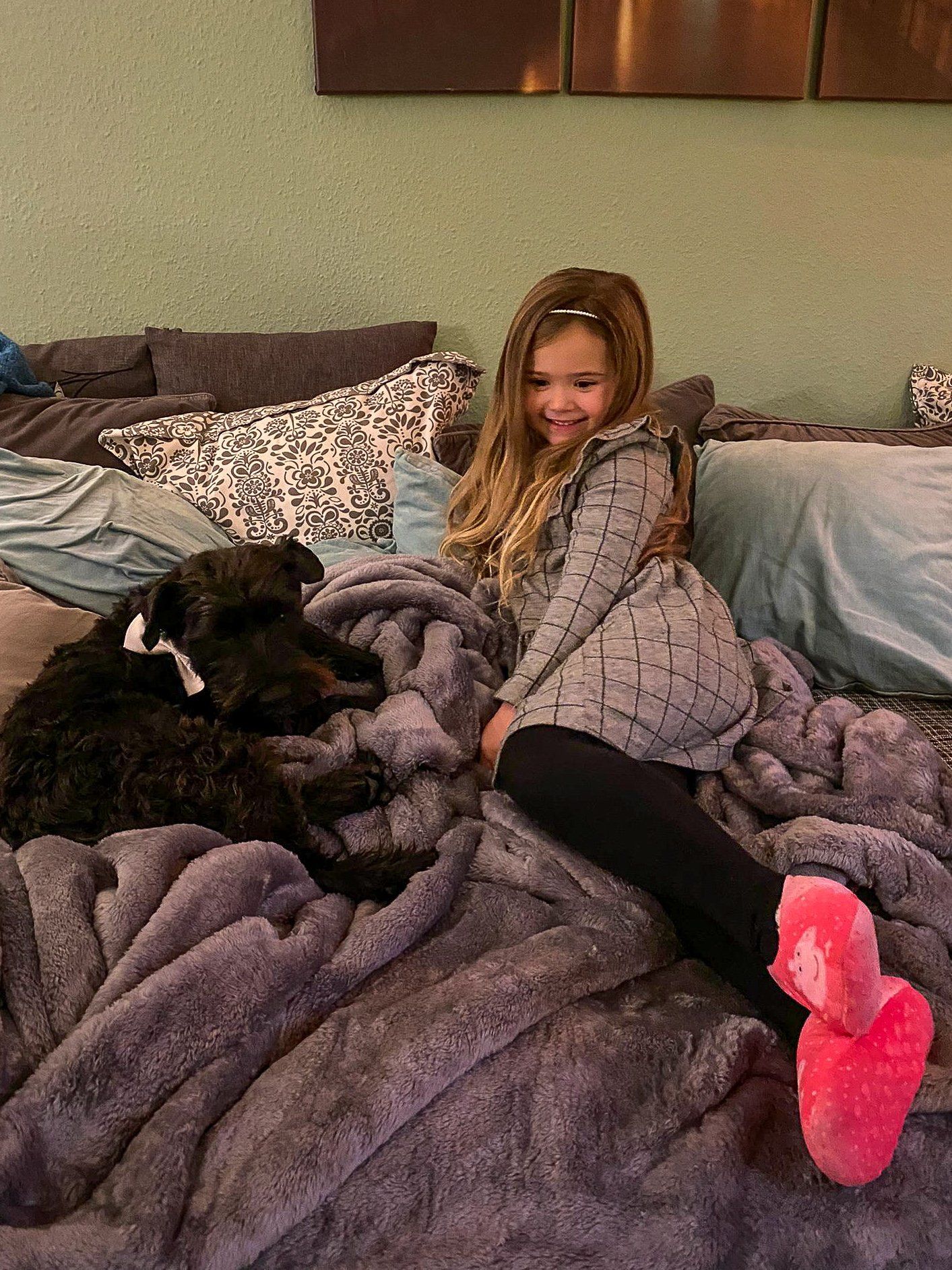Auch das neue Familienmitglied Nala, die junge Hündin von Janne, war ein Erlebnis. Die schon beeindruckende Größe darf nicht darüber hinwegtäuschen, dass es sich noch um einen Welpen handelt. acht Monate ist sie alt und muss noch viel lernen. Sie ist aber auch interessiert und lernt schnell. Allein das Gassigehen an der Leine hat sich in diesen zwei Wochen erheblich verbessert.