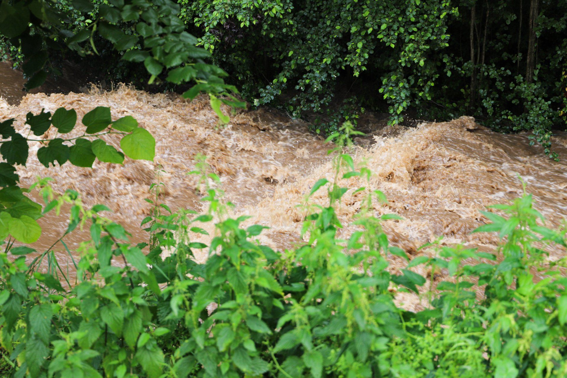 Nach starken Regenfällen ist aus der Losse ein reißendes Wildwasser geworden