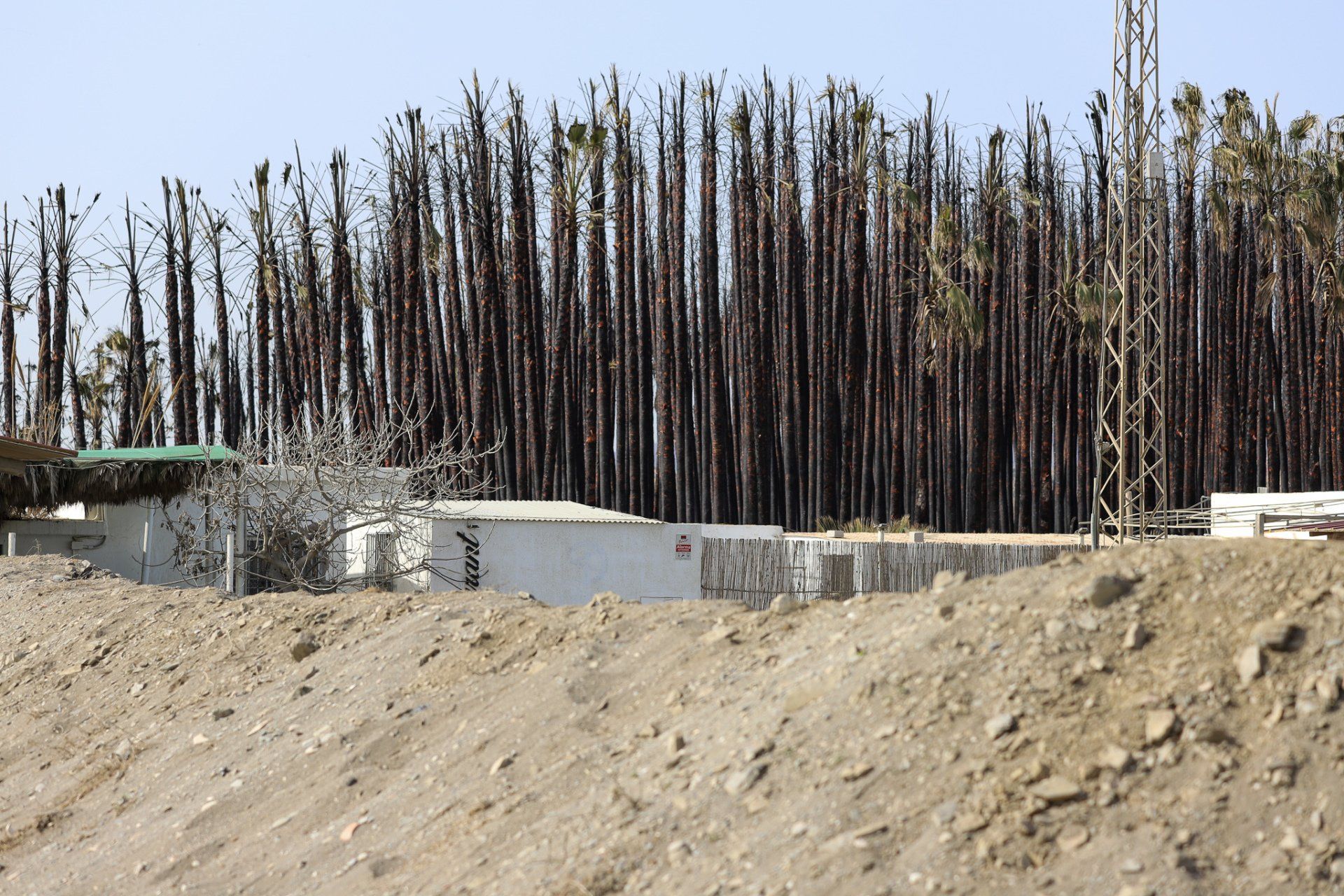 Hier ein kurzes Update zum Brand. Im Blog hatte ich schon über das Feuer auf dem Nachbargrundstück berichtet. Es war durchaus eine aufregende Geschichte. Wäre es nicht so windstill gewesen, hätte es ganz anders ausgehen können. Hier noch ein paar Bilder dazu. Am nächsten Tag habe ich die verkohlten Stangen fotografiert. Erst da konnte ich sehen, dass das Feuer doch eine ganz schöne Distanz zu uns hatte. Auch die dazwischen liegenden Stallungen der Pferde waren nicht beeinträchtigt.