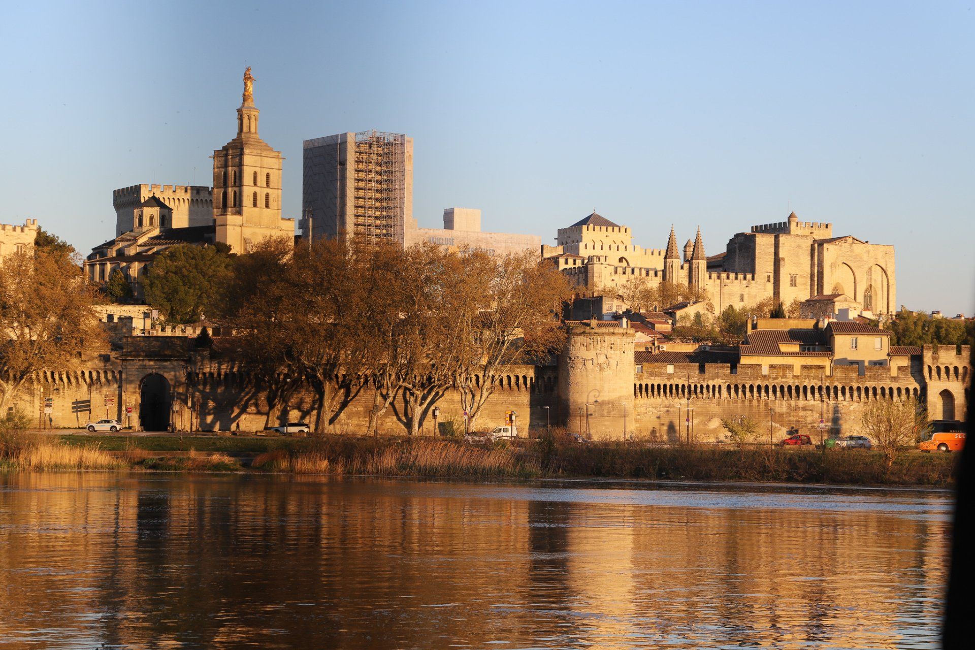 Heute war uns das Wetter hold und wir konnten die Schönheit der Stadt in einem anderen Licht betrachten. Hier ein paar Bilder dazu. Vom anderen Ufer der Rhone sieht die mittelalterliche Stadtmauer und die anderen Gebäude wie aus der Zeit gefallen aus. Die Abendsonne gab dem Ganzen noch einen besonderen Effekt.