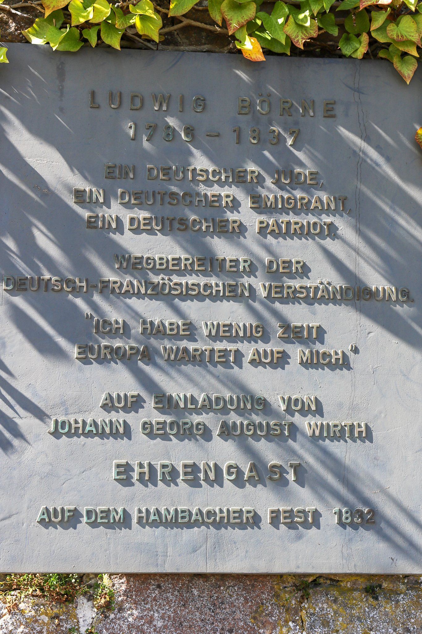 Unterhalb des Hambacher Schlosses in der Andergasser Stubb und der Weinkellerei von Carl Disson, lässt es sich aushalten. Das Hambacher Schloss ist mit dem Hambacher Fest von 1832 ein Ausgangspunkt für Demokratie und staatliche Einheit in Deutschland und die Grundlage des Europäischen Gedankens.