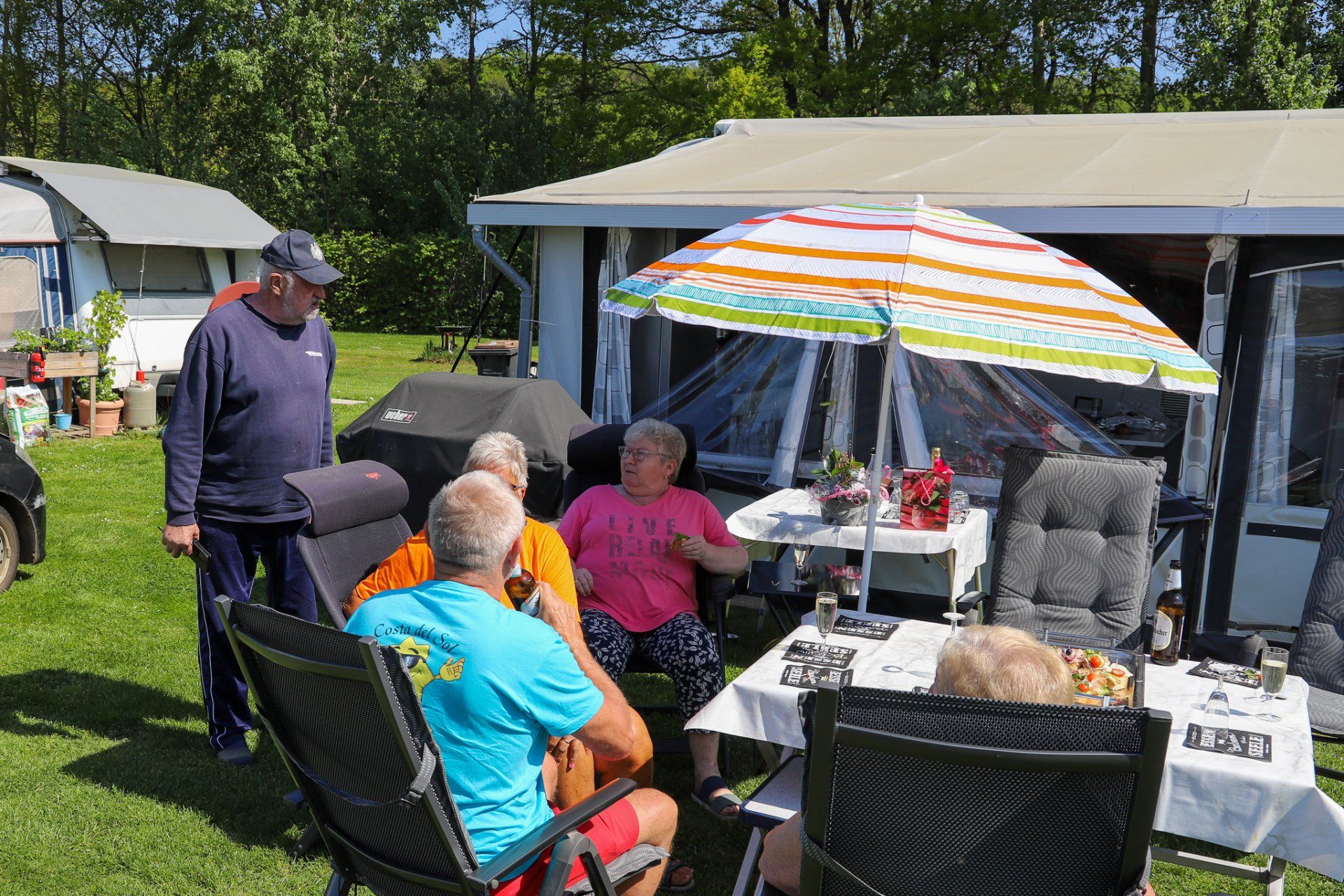 Was früher einen erheblichen Einschnitt in die Lebensführung bedeutete, ist heute nur noch eine Zahl, ein Geburtstag wie viel andere. Mit dem Renteneintrittsalter hat es nichts mehr zu tun. Und doch sollte man die Ehrentage feiern, wie sie fallen. Da muss nicht immer eine 0 hinten stehen, da reicht irgendwann auch eine 5. So konnten wir an deinem Tag bei allerbestem Wetter mit lieben Freunden den Tag draußen in der Sonne verbringen. Alle haben das, wie du hoffentlich auch, genossen. Dir galten die besten Glückwünsche für die nächsten fünf Jahre.