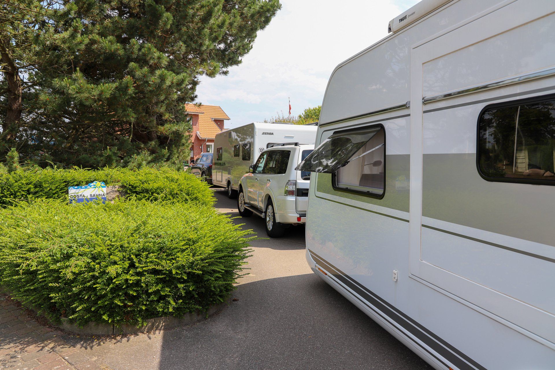 Der Campingplatz "Costa Sahna" ist aller erste "Sahne". Große mit grüner Wiese ausgelegte Parzellen mit Wasser und Abwasser. Das alles zu einem akzeptablen Preis. Das findet man leider nicht mehr so oft. In der ersten Woche wurden wir von der Sonne verwöhnt. Jetzt ist das Wetter mehr in einen normalen norddeutschen Sommer gewechselt. Frei nach dem Motto "es gibt kein schlechtes Wetter, nur unpassende Bekleidung" nehmen wir es wie es kommt, mal mehr draußen und manchmal auch im Vorzelt.