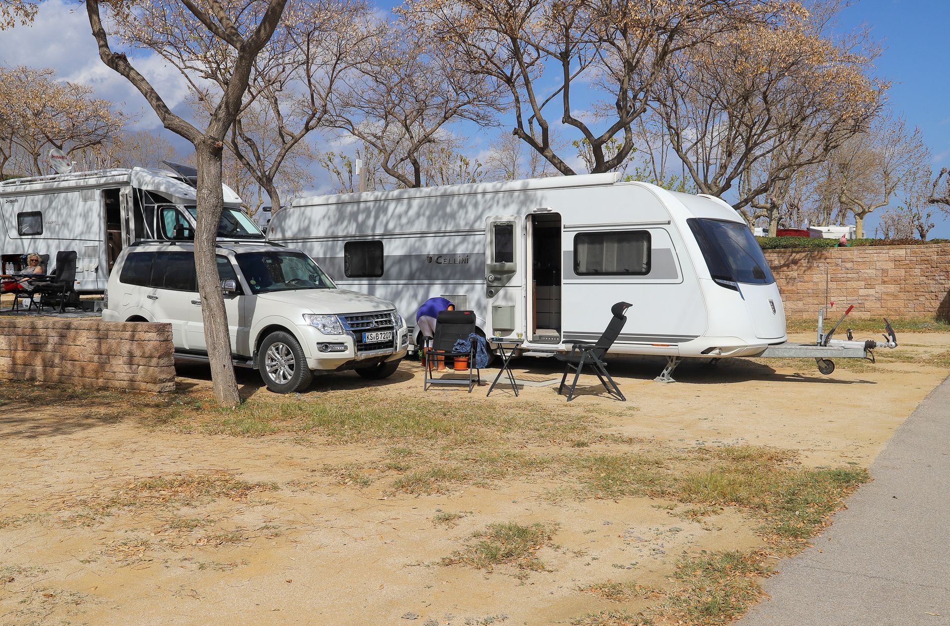 Wo ist die Zeit nur geblieben. Es ist doch erst ein paar Tage her, dass Neele und Mattes uns besucht haben. Und jetzt ist es schon Ende März. Die spanische "Semana santa" steht vor der Tür. Viele der Überwinterer sind schon aufgebrochen. Die Allee fünf, in der wir stehen, hat sich heute morgen rapide geleert. Alles scheint auf die Spanier für die Osterferien zu warten.