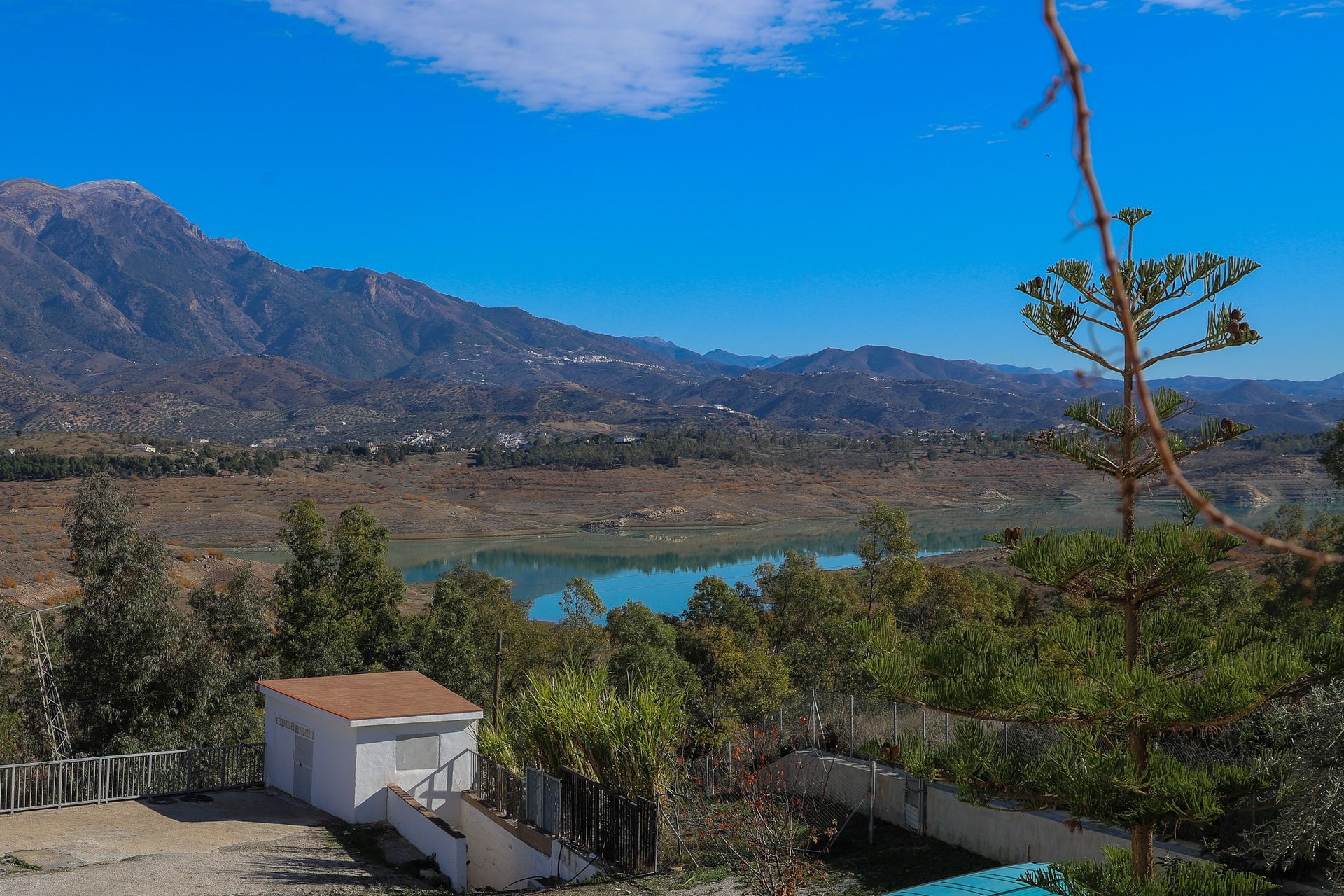 Bei einem weiteren Tripp in die Umgebung führte uns Manfred als Scout in einem weiten Bogen um den Stausee von Vinuela herum. Dabei kamen wir zum einen zu einer Ölmüle, der Aceite de Periana und andererseits zu einem tollen Ausflugslokal mit einer tollen Küche. Der Stausee ist nach jahrelanger Dürre und ausbleibenden Regenfällen speziell im Winter nahezu trocken gefallen. Auf den Bildern kann man die ehedem erreichten Pegelstände noch ganz gut erkennen.