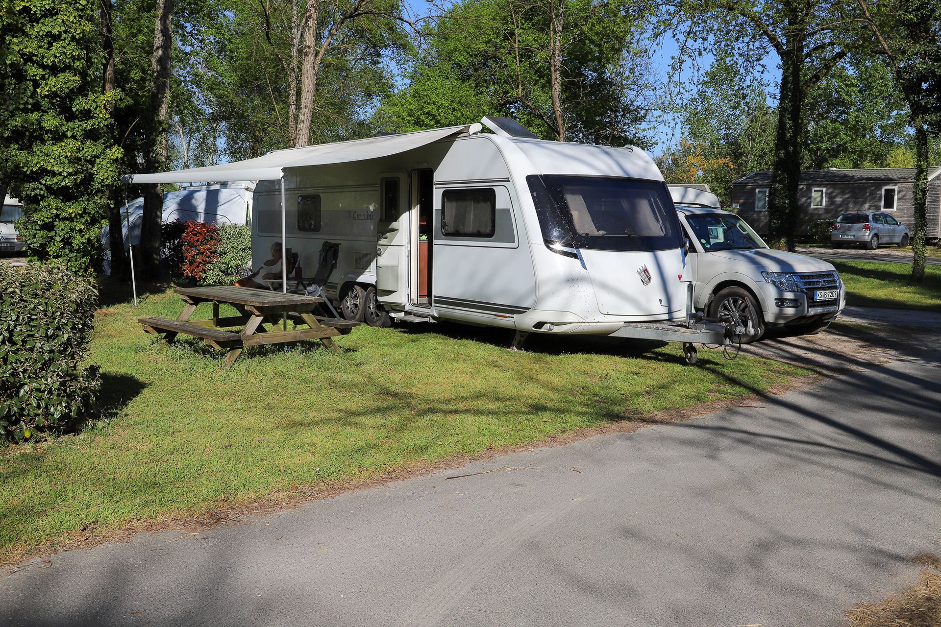 Der Campingplatz ist eigentlich sehr schön. Sehr ansprechend angelegt. Viele Pflanzen und Blumen. Sehr schönes Sanitärhaus alles blitzt nur so vor Sauberkeit und das Alles mit ACSI für 21 €. Leider sind die Parzellen nicht so richtig groß. Wir mussten diagonal stehen und kamen kaum um unseren Cellini herum. Wir werden uns mal umschauen. Vielleicht gibt es ja noch angemessene Parzellen.
