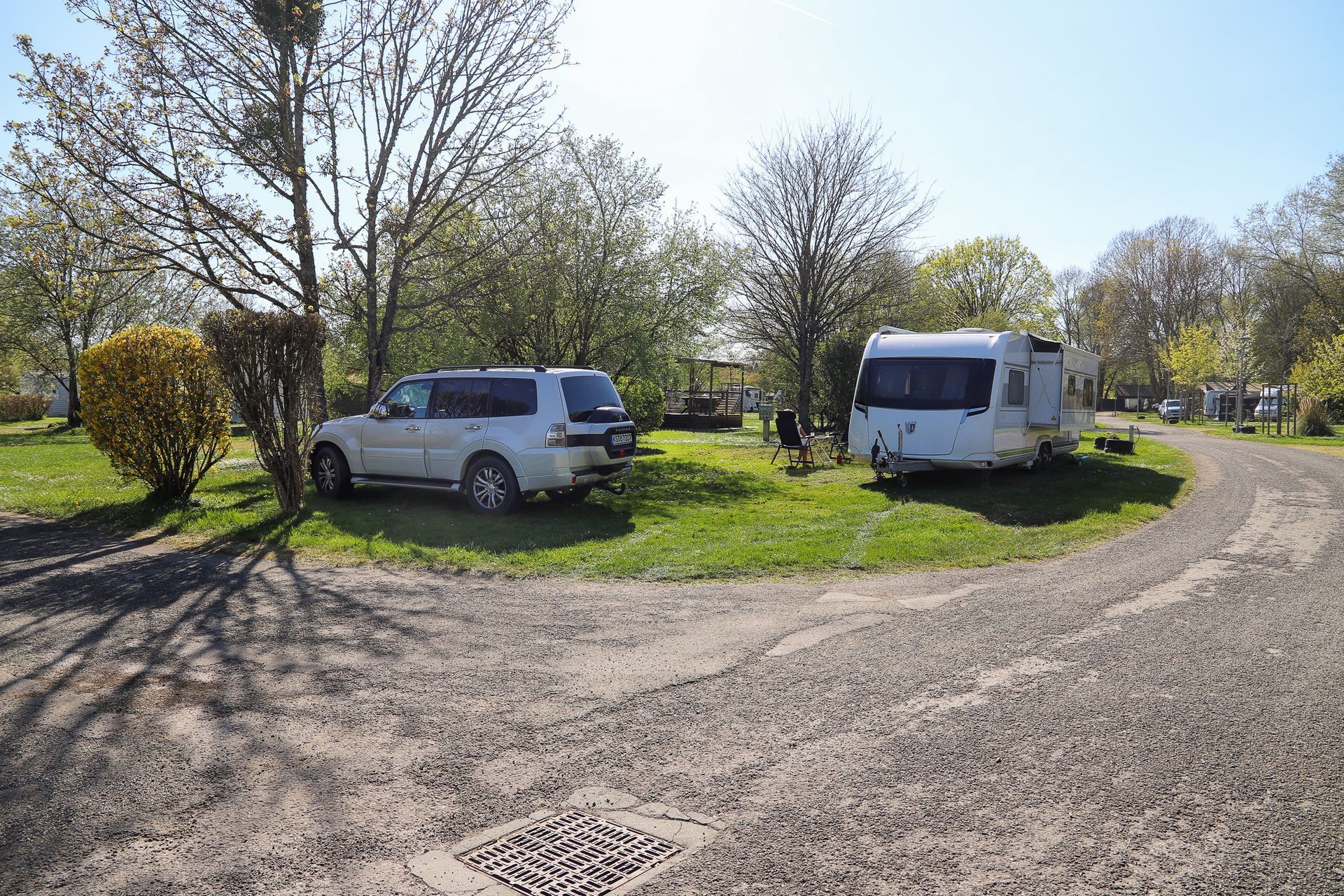 Von hier dann ab durch die Mitte der Republik durch schöne frühlingshafte Landschaft. Anscheinend ist das eine wenig bereiste Gegend, jedenfalls gab es nur Straßen 2. Ordnung mit Steigungen, Gefällstrecken und geringer Breite, was einem im Gespann Betrieb mit einem Wohnwagen von 2,5m Breite manchmal den Schweiß auf die Stirn treibt.