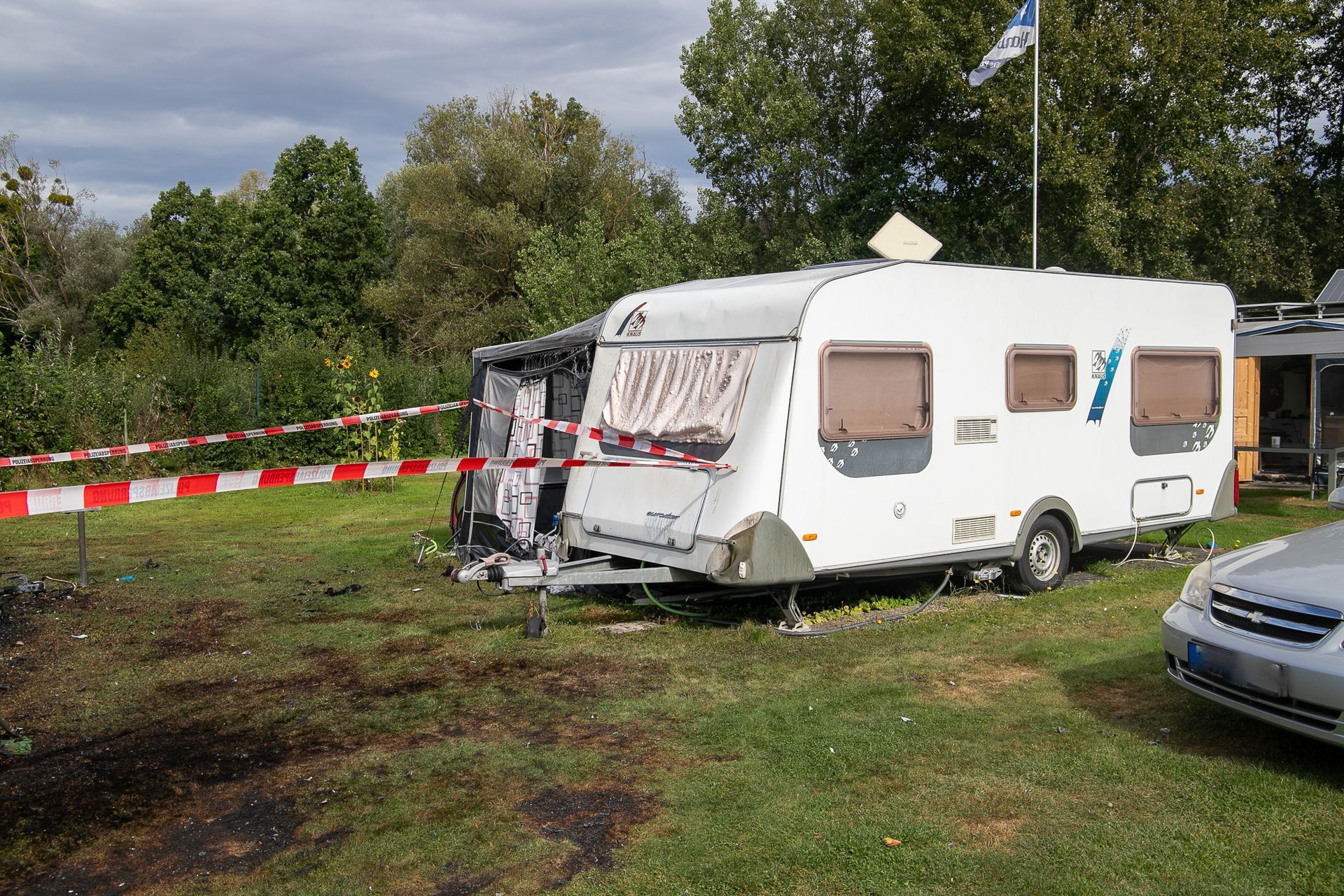 Dank des Einsatzes eines Nachbarn kommt es nicht zum Übergreifen auf die angrenzenden Wohnwägen. Beim Eintreffen der Feuerwehr sackt der Brandherd schon in sich zusammen. Was bleibt ist ein Haufen schwarz verkohlter Reste. Ein paar Stahlrahmen- und Rohre, ausgebrannte Geräte und die Asche von allen Habseligkeiten.